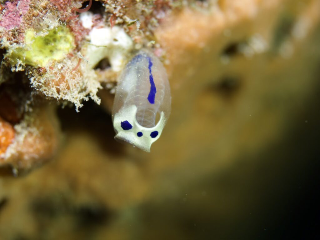 オーバーハング気味の岩には人気のホヤが付着しています。