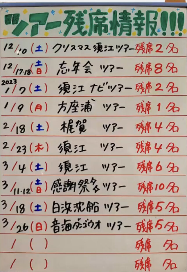 現在のツアー残席情報です🚗