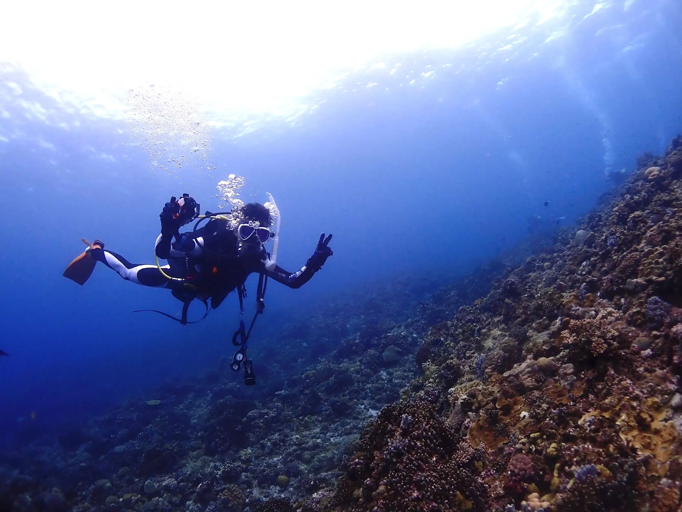 選びきれないくらいどのダイビングもとっても楽しかったのですが、初めて潜ったオープン・ウォーターの海洋講習の海と、ライセンスを取得してから初めて船に乗り、伊豆大島へ行ったダイビングが思い出に残っています。オープン・ウォーターの時はものすごく緊張していましたが、初めて潜った海は感動的でずっと潜っていたかったです。伊豆大島では、私の大好きなウミガメちゃんに出会う事が出来てとても幸せでした!