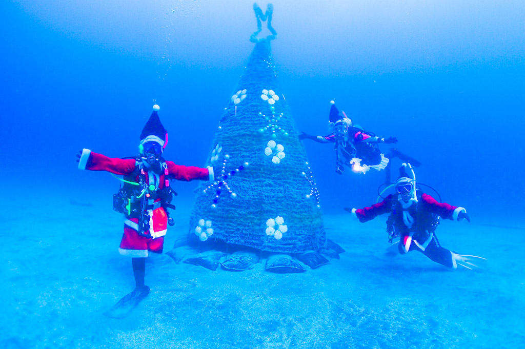 クリスマスシーズンには水中でクリスマスツリーを見ることができる場所もあります。これはダイバーにしか見ることができない冬の景色ですね。