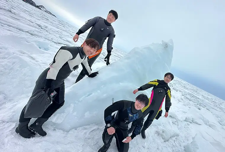 冷水域でのダイビングで主に冬の北海道で行われることが多いダイビングスタイルです。