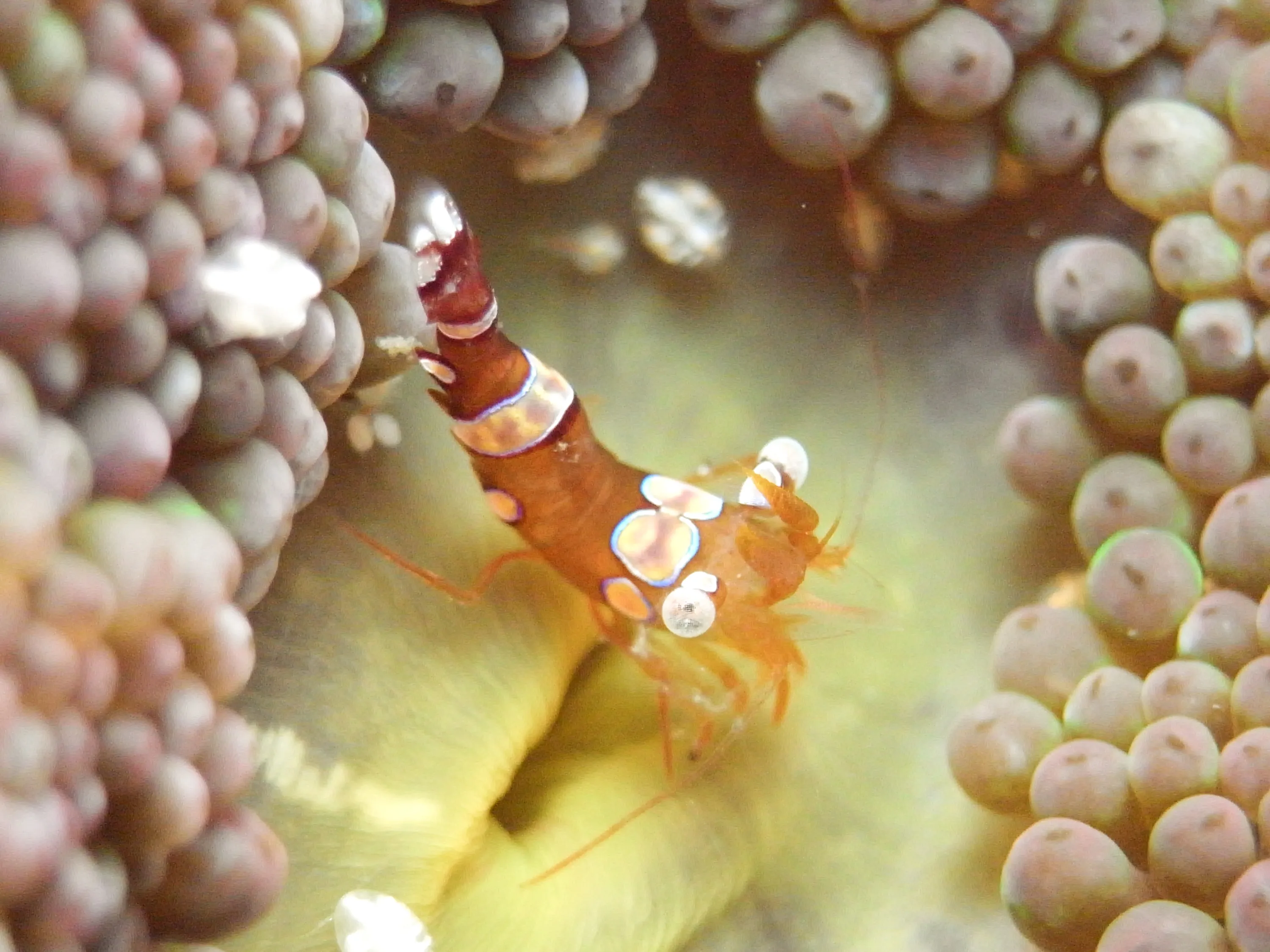 エビやカニは基本的に夜行性のため、日中は岩陰や海藻の陰、珊瑚の隙間などに身を潜めていますので、探すのには一苦労します。