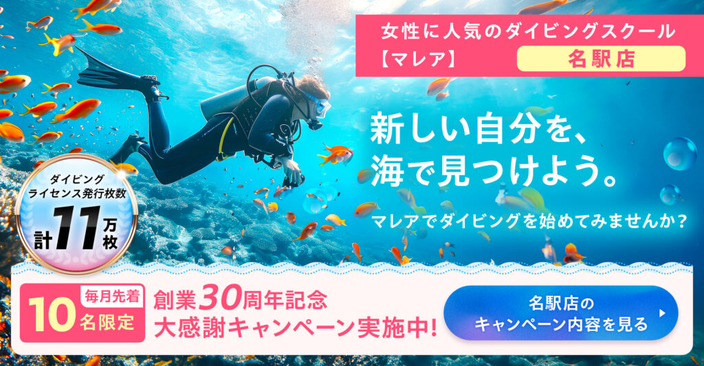 マレア名駅店ではダイビングライセンス講習はもちろん、平日休日問わずツアーも開催しております♪