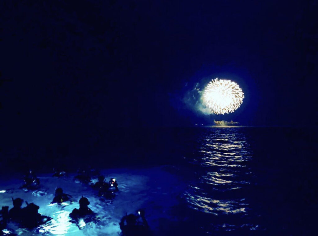 なんといっても年越しの瞬間に合わせてカウントダウンするナイトダイビングは水面で眺める花火付きと一生の記憶になること間違いなし!