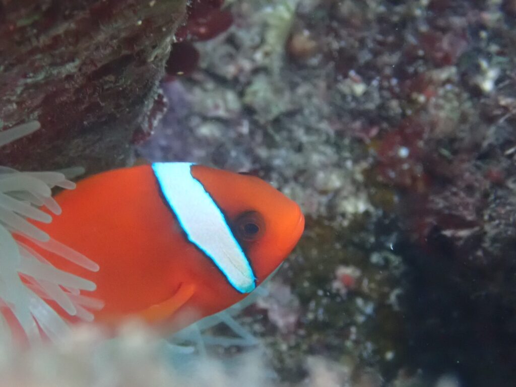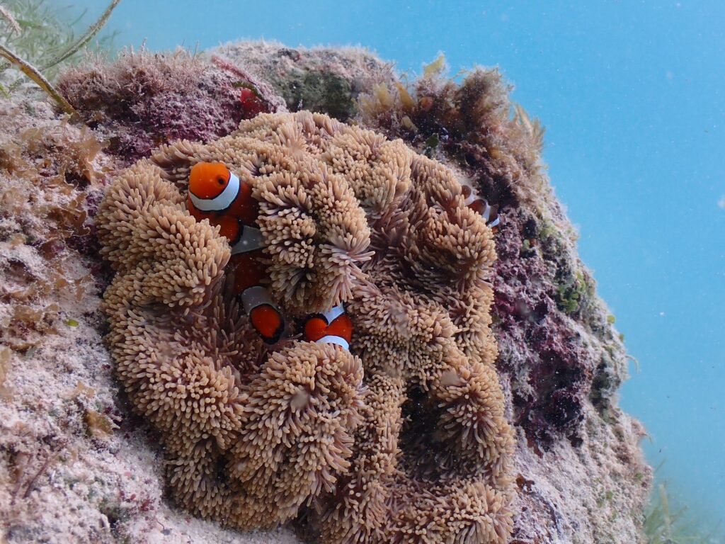 やはり沖縄らしい魚、クラカオスズメダイ、ミスジリュウキュウスズメダイ、そして「カクレクマノミ」もー!