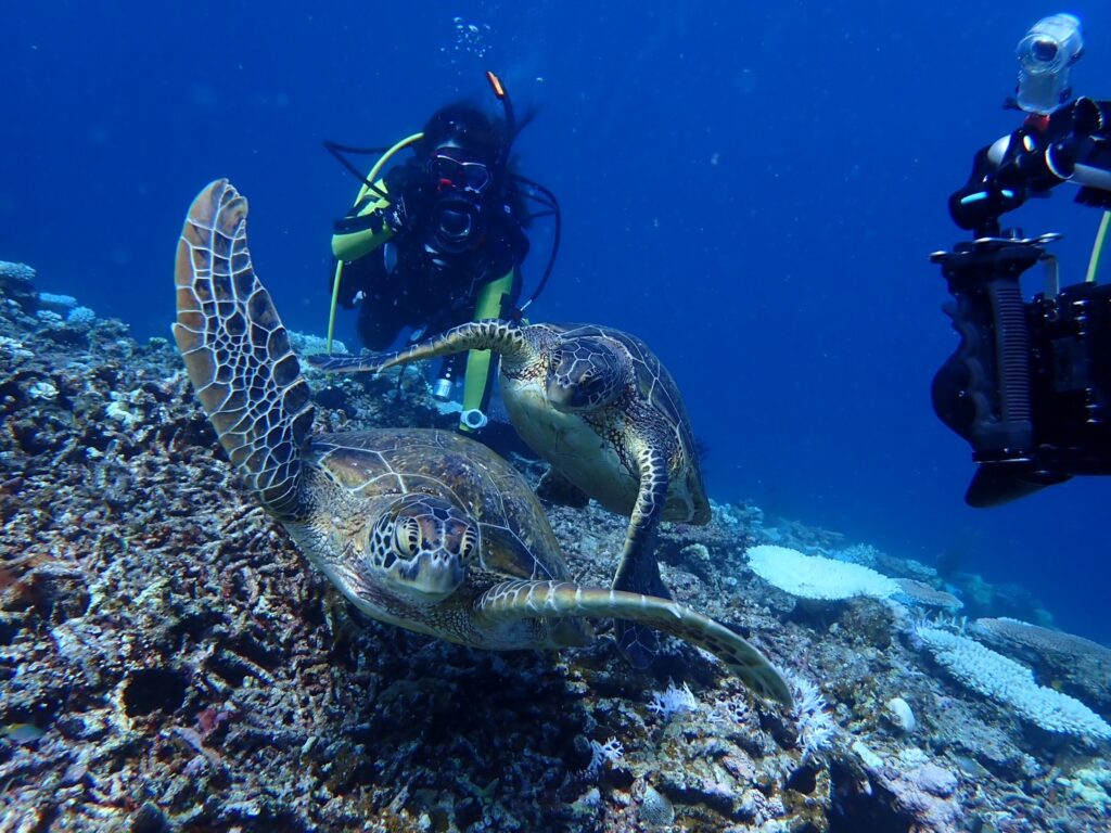 そしてこのダイブでは、このツアー初のカメ遭遇!!!!