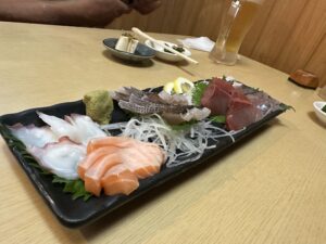 新鮮な刺身に九州の甘い醤油を絡めて食べると、超うまい!