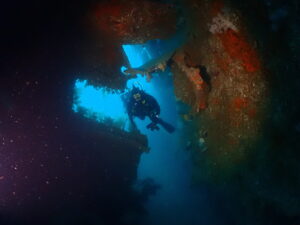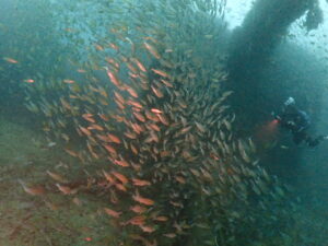 巨大な沈船は長い年月をかけ漁礁と化し、魚の住処ともなってます。