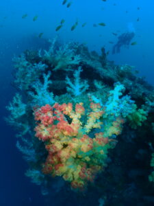 船にはカラフルなソフトコーラルが沢山ついてます。