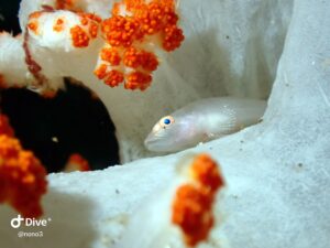 ウミトサカには大体スケロクウミタケハゼがいます。