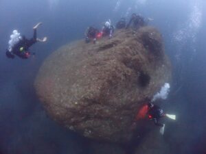 上の岩はエイロックと言われており、5~6月にかけて大量のエイが