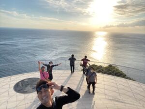途中錦江湾を右手に見ながら南下していくと、佐多に到着です!