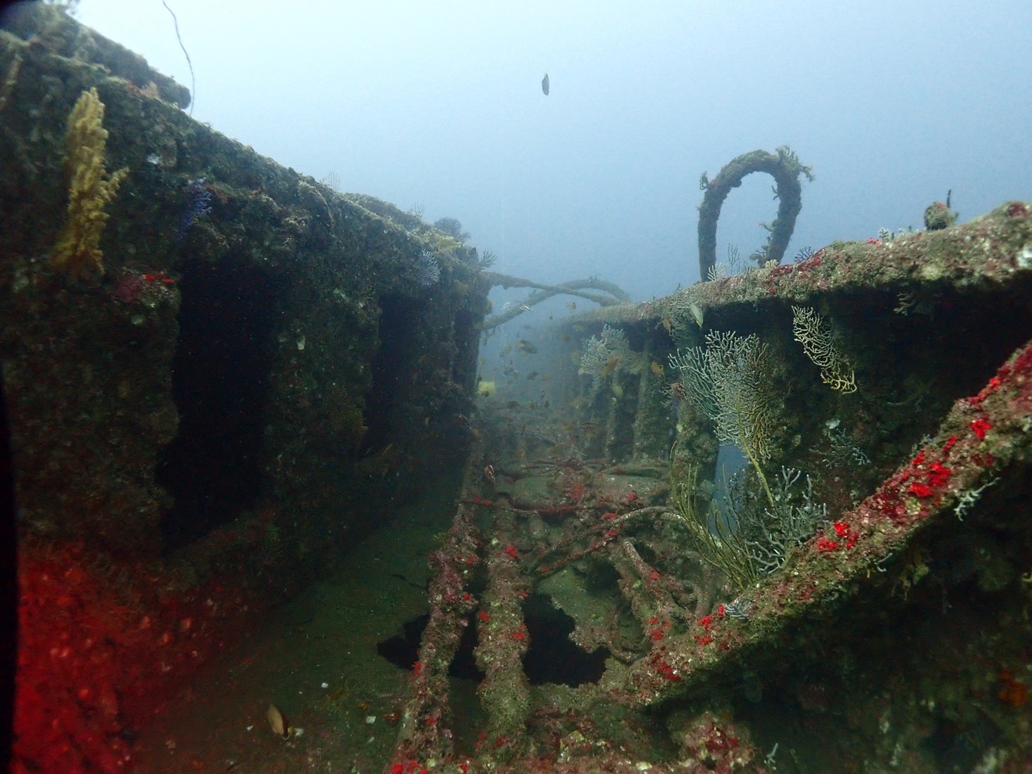 存在感の大きさにびっくりしました!!ダイバーが小さく見えるくらい立派な船ですね!今まで見た中で最大級に大きな船でした!
