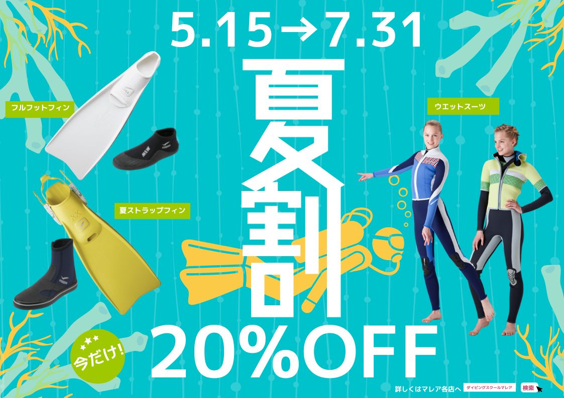 なんと今なら、夏用のフィンたちが7/31まで20%OFF!!