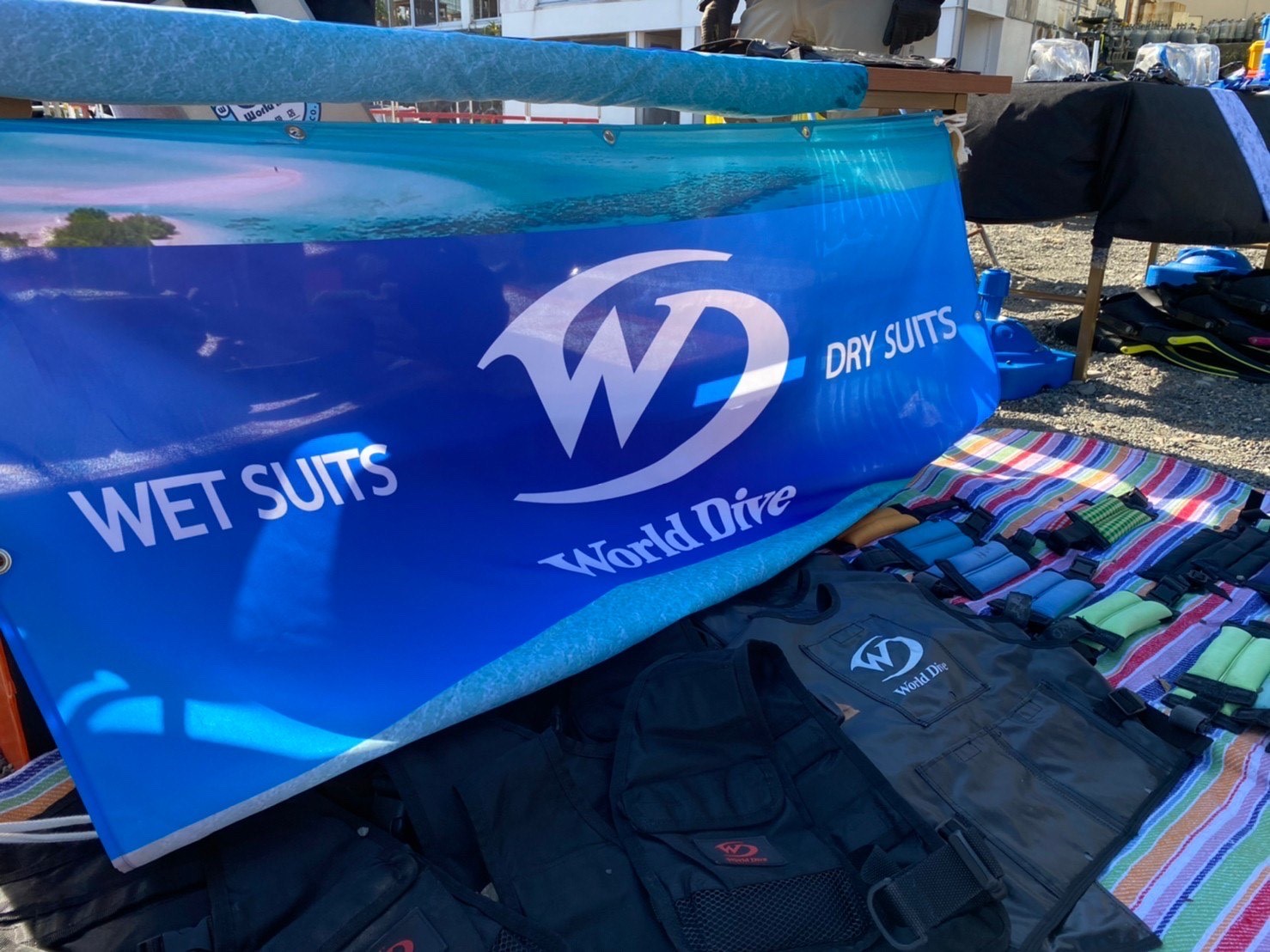 日本一人気のドライスーツメーカー「ワールドダイブ」さんではドライスーツ・ウエイトベスト・アンクルウエイト。