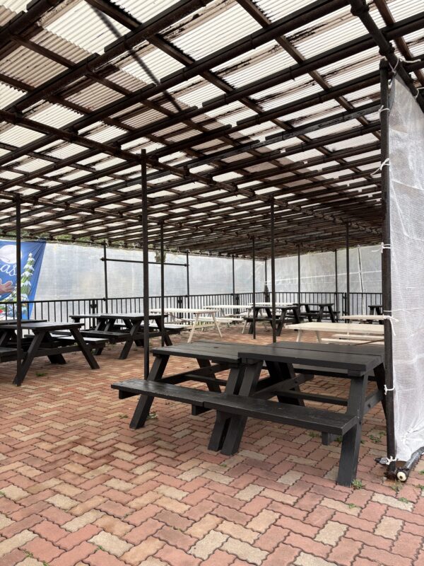 ・屋根付きの広い休憩スペース