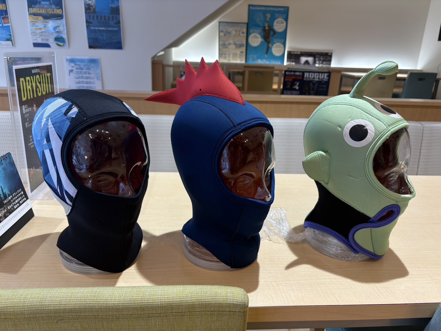水中はフードにマスクをつけてダイビングをしていると、誰が誰か分からなくなってしまうことも…