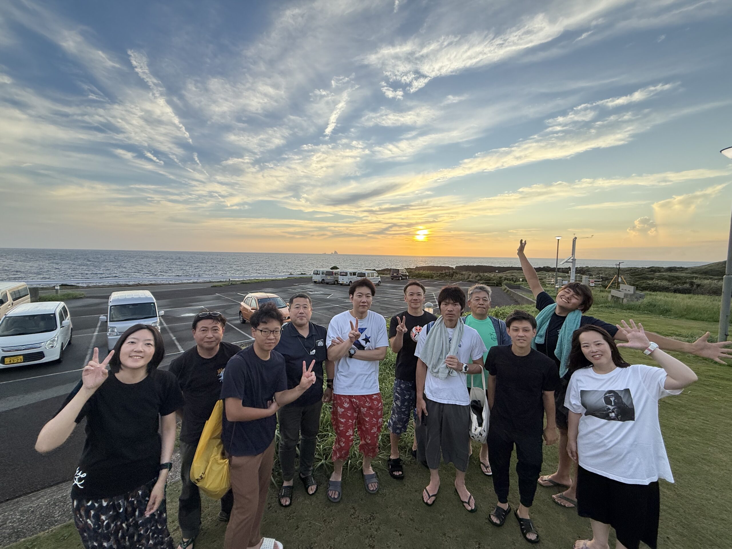 丁度、夕焼けの時間(^^♪ 絶景を背にみんなで記念撮影!無事晴れてよかった~!!