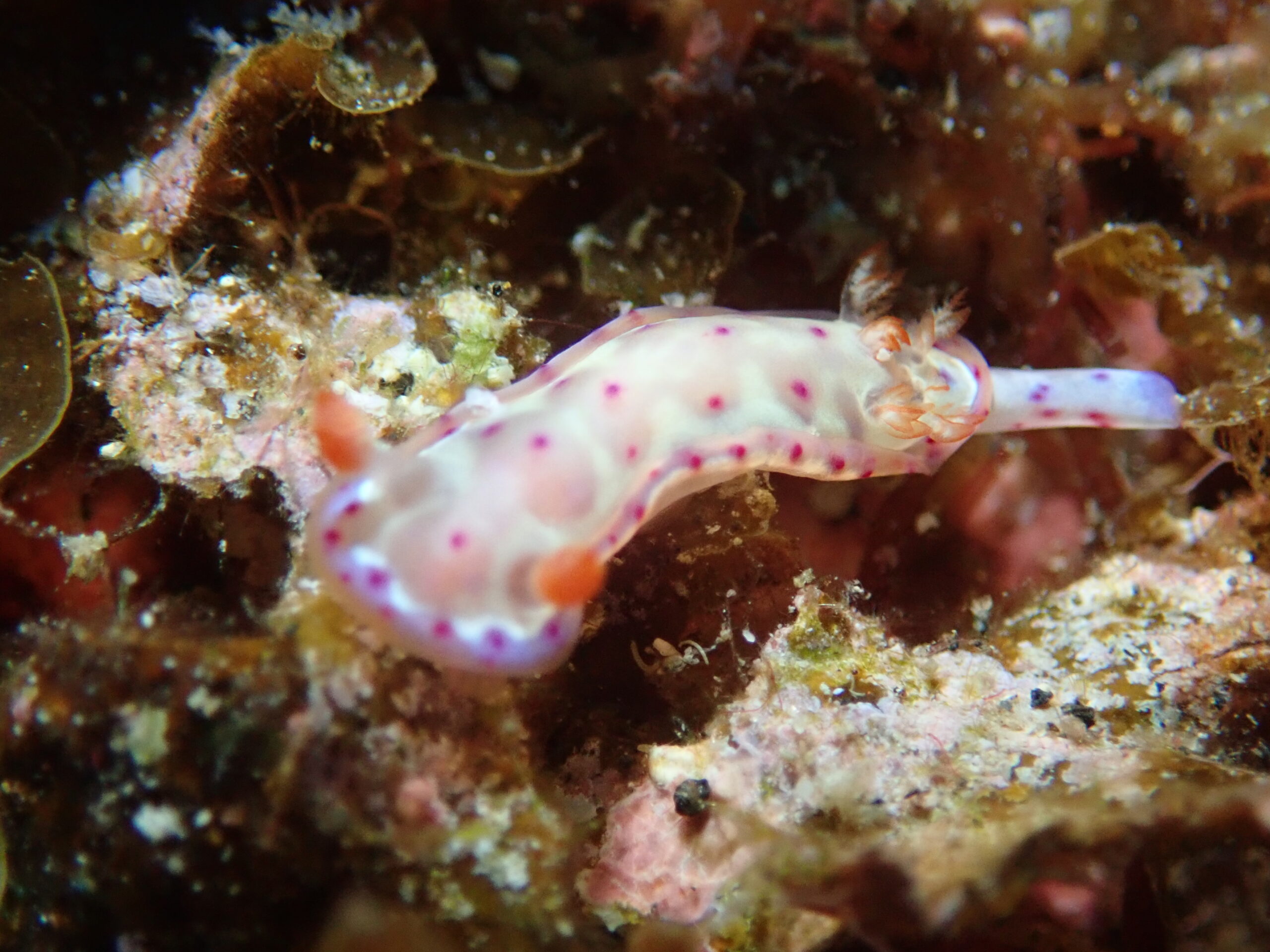 ここは大きな壁に沿ってマクロ生物探し!ウミウシやレアなえびちゃんなど!