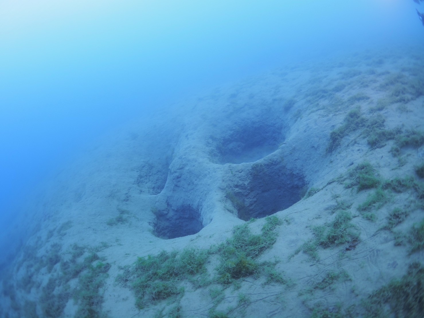 広く浅い泥地を進んでいくと10mあたりにぽつぽつと出現する穴!