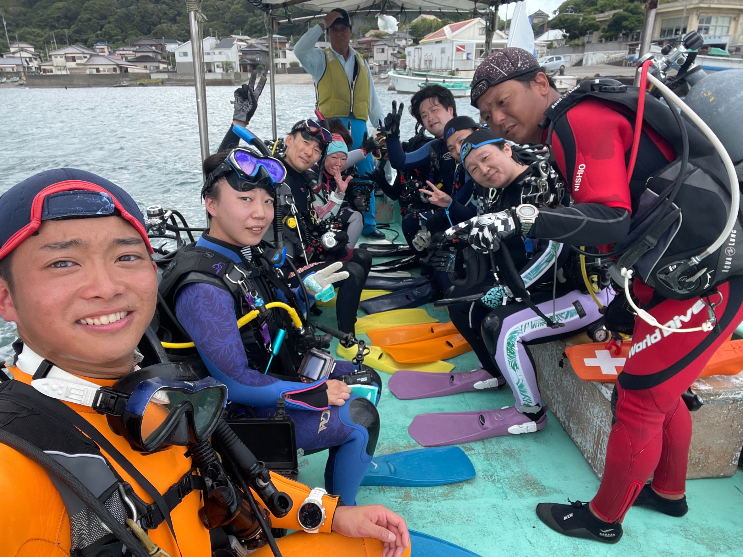 僕がレンタルの蛍光オレンジスーツを着ているのは良いとしてこの日は西尾さんと波佐間にツアーでした。水中もキレイで日帰りツアーですが3本潜る事が出来ました✨