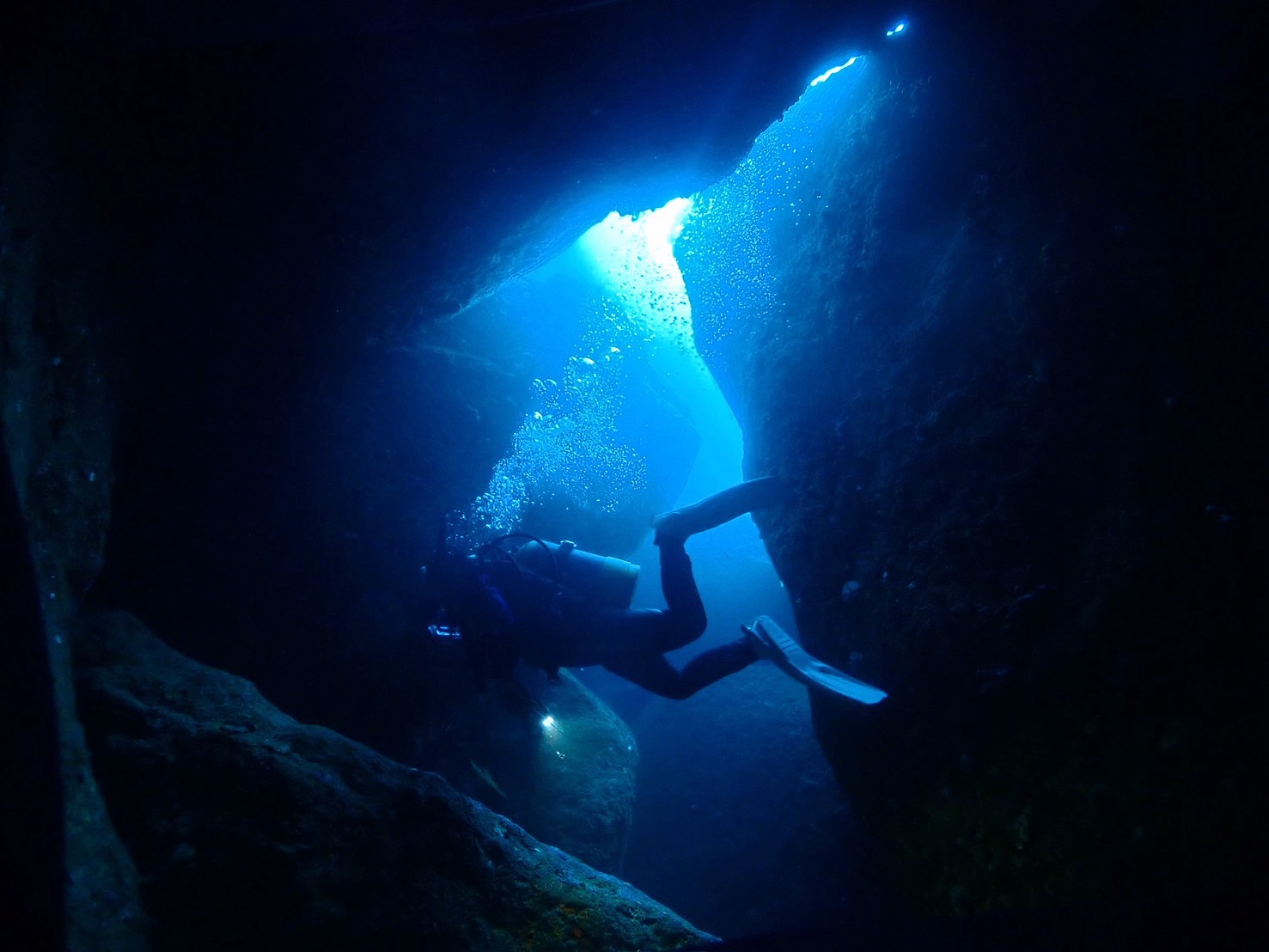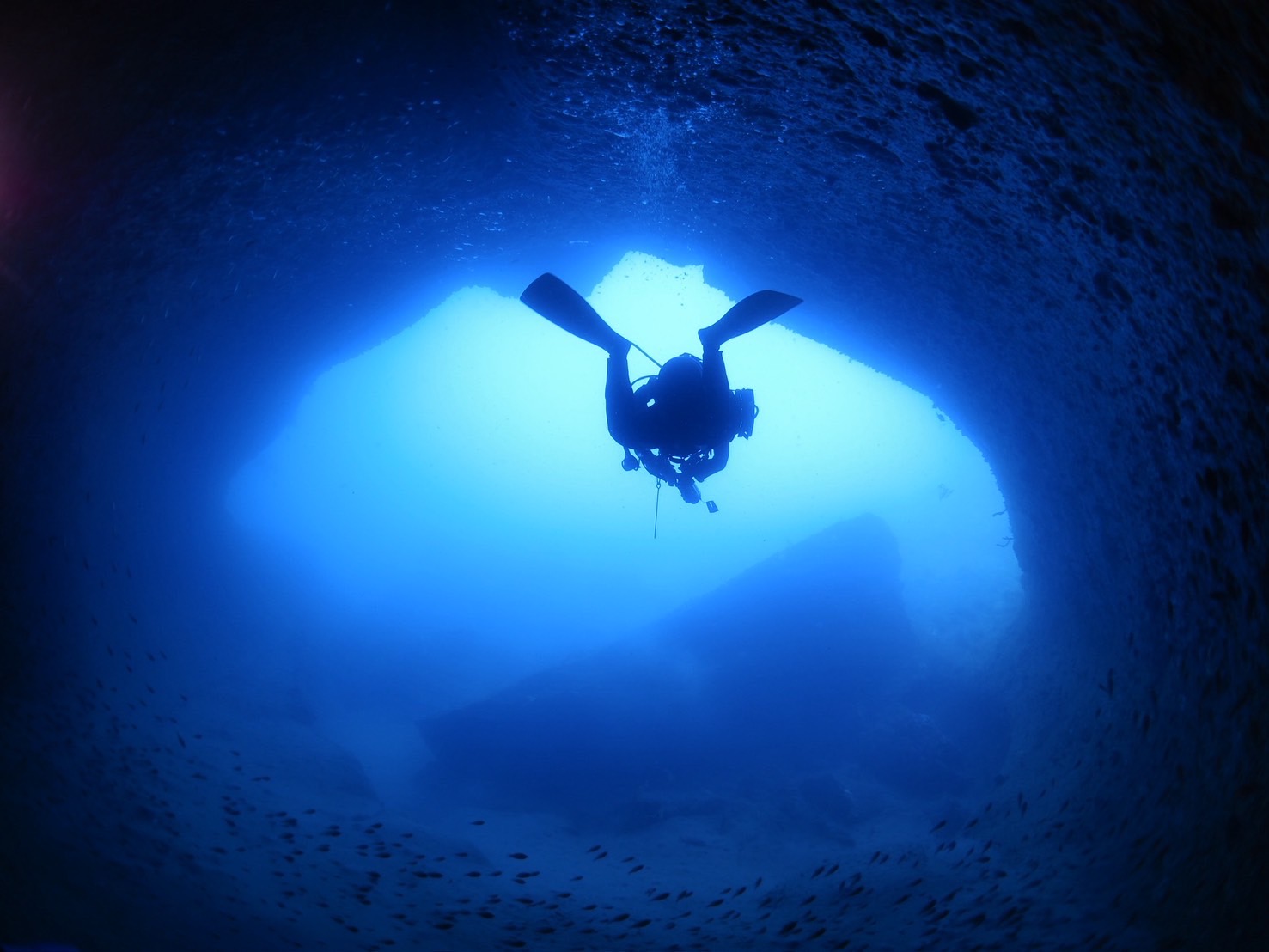 ・ワイド派:洞窟、魚群、サンゴ