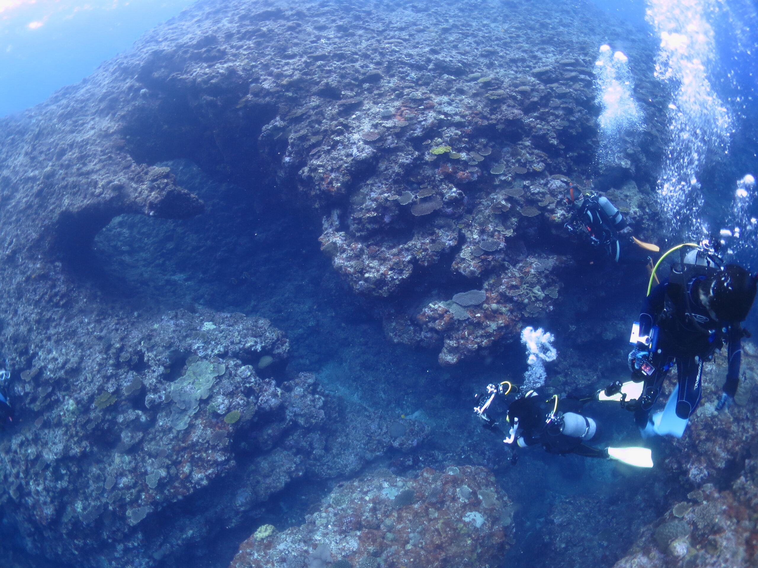 細い水路を通ったり、ホールのような地形があったり、がっつり地形ダイビングでした!