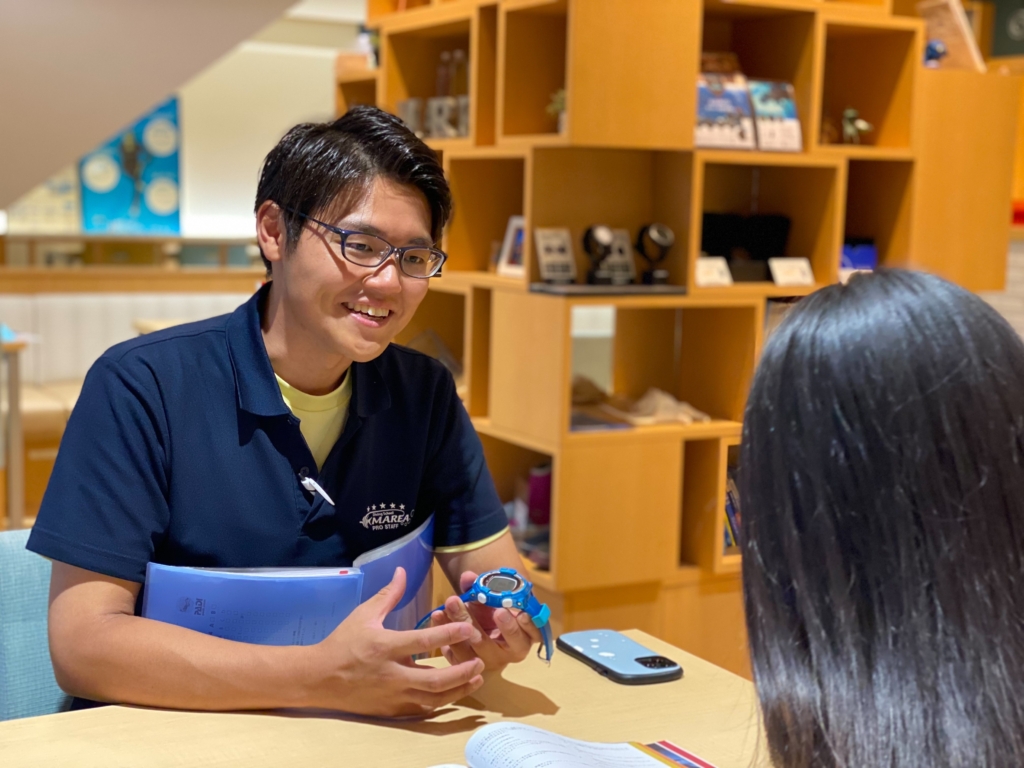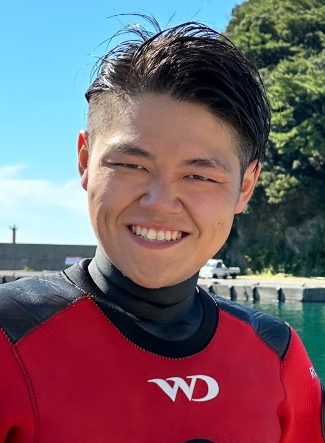 「何かしらの形で大好きな海の事を伝えたい!」と考えていて、水族館の飼育員を目指して生物系の大学に通っていました。4年間水族館での実習やダイビングを経験していく中で、実際の海ならではの魅力に引き込まれ、憧れるスタッフさん達のと出会いもあってインストラクターになろうと決めました!