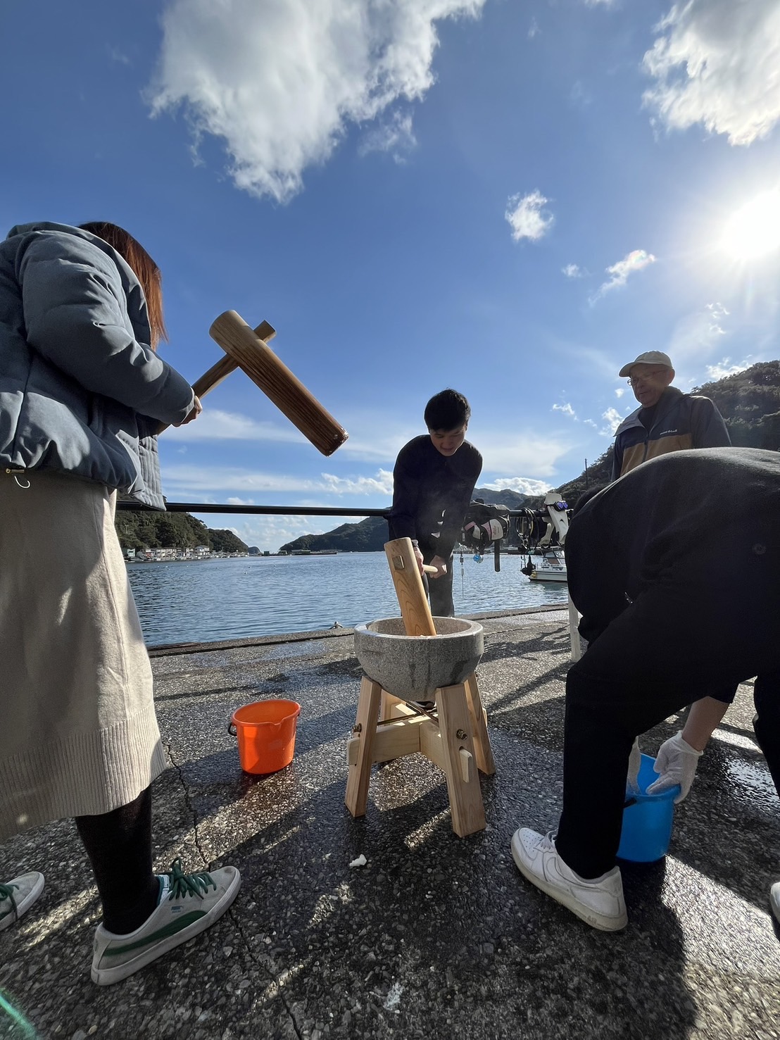 みんなで1・2・3で順番に餅つき!!