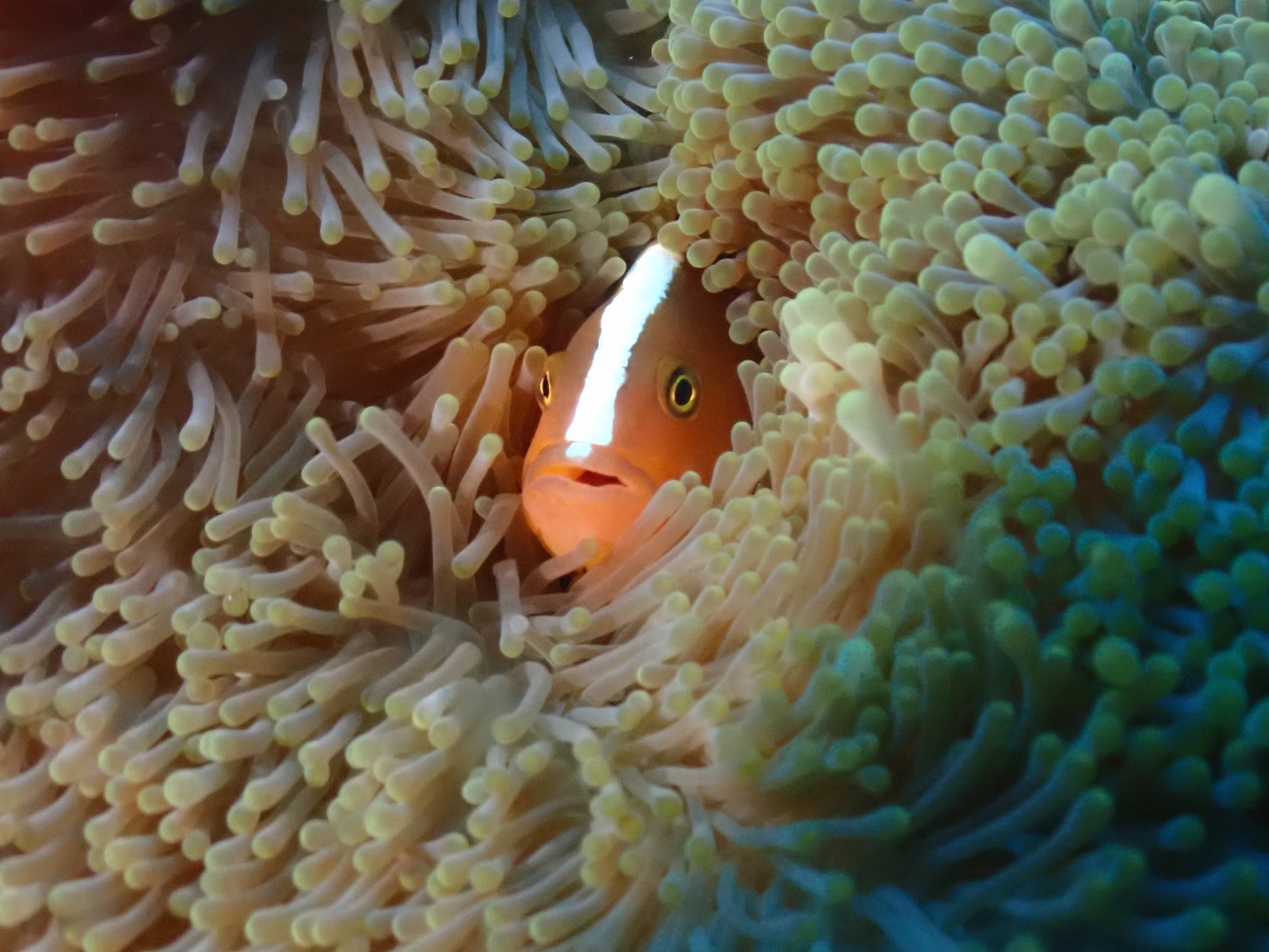 このクマノミはちょっとシャイで、なかなかイソギンチャクから出てきてくれませんでした・・・。