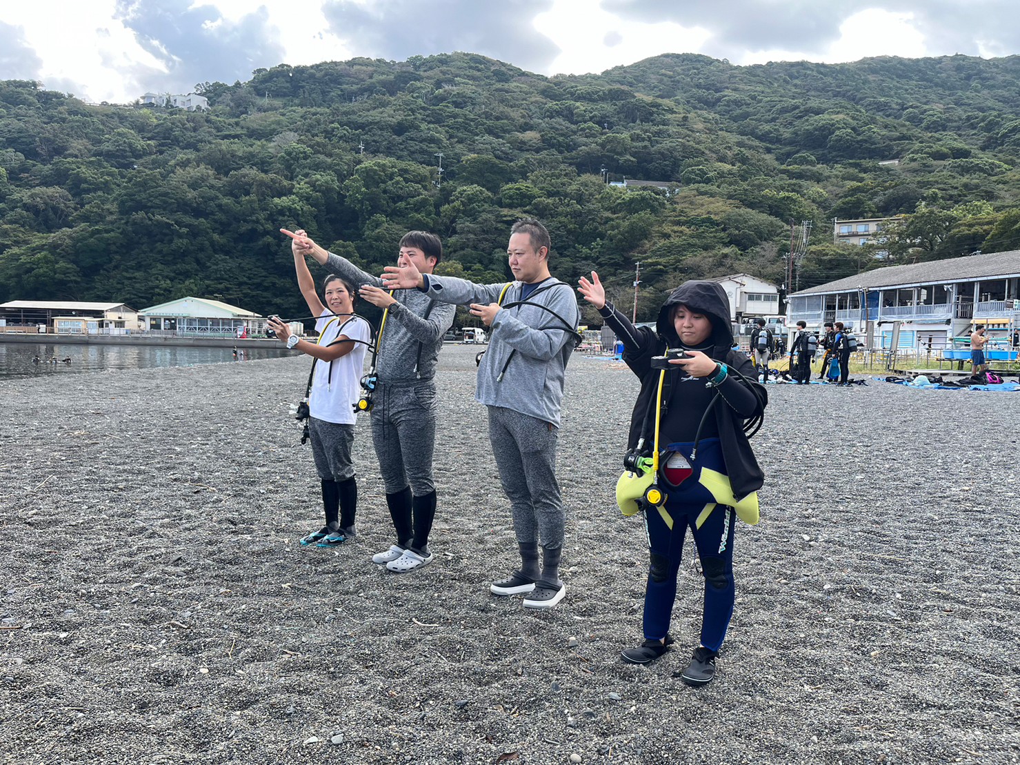 陸上で練習したコンパスを水中で実践して、見つけたものをみんなで協力しながら引き揚げます!