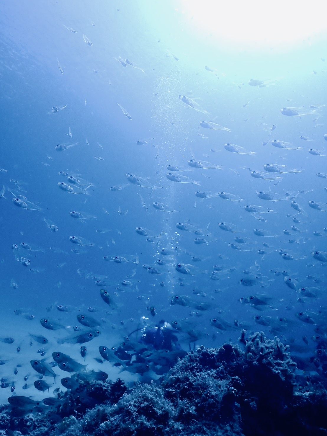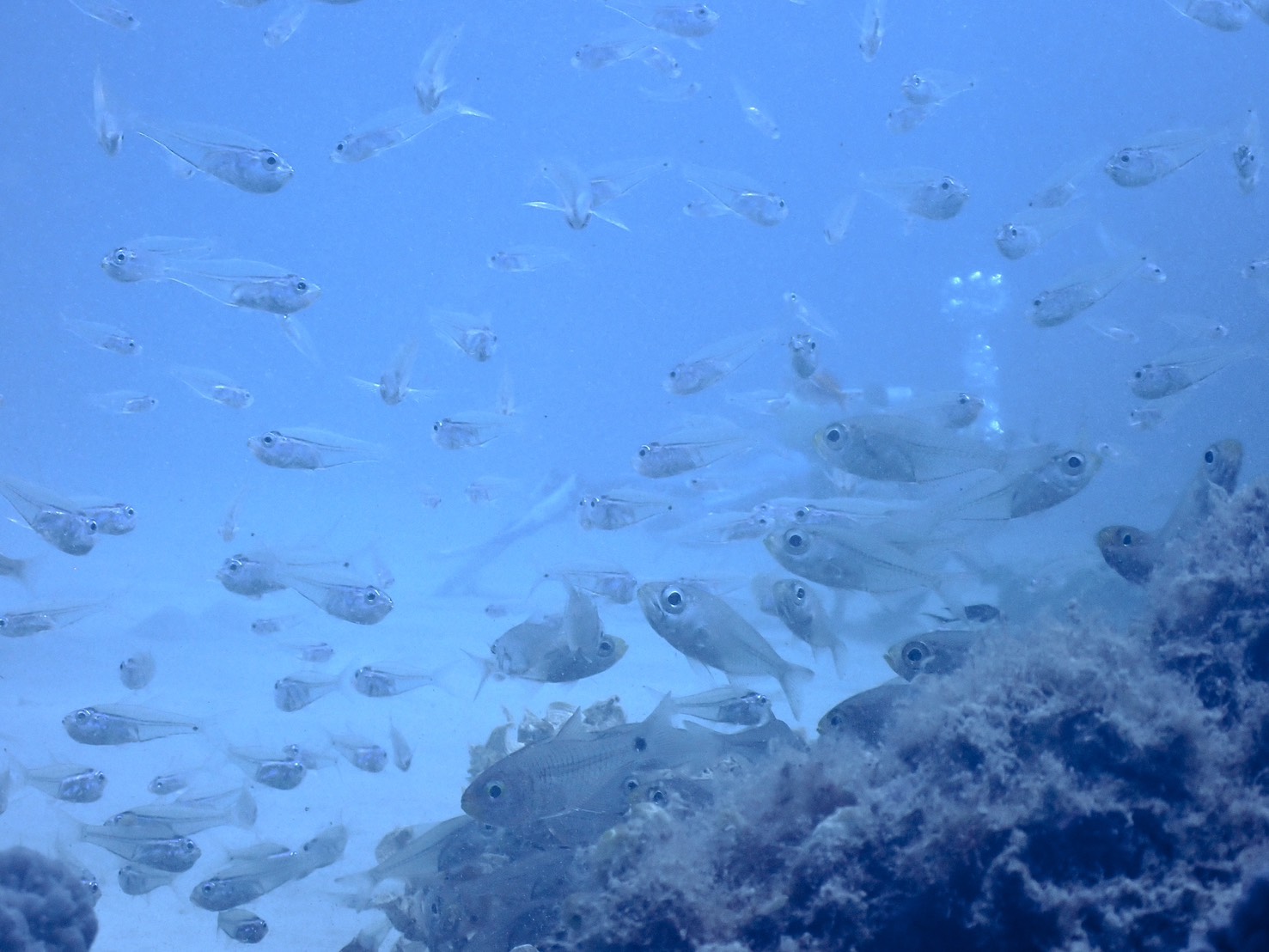 サンゴの周りには体が透けているスカシテンジクダイがいました!