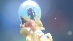 チトセバイカモにのっかる空気の泡に移る景色や花はとっても幻想的でした♪
