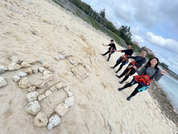 宮古島の綺麗な砂浜に 石を使って【宮古ツアー】と みんなで協力して作成しました👏