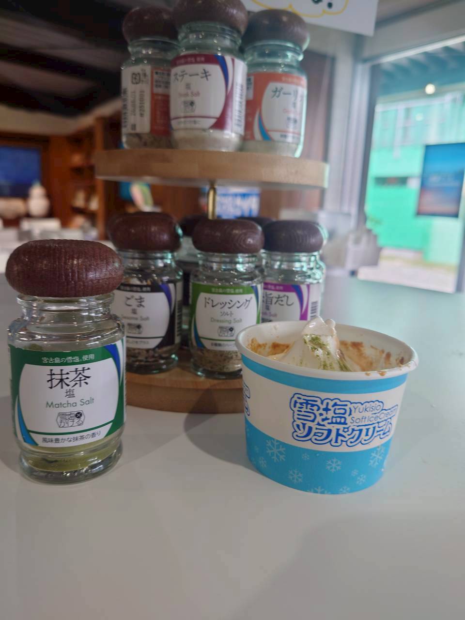 店内には、宮古島の名産雪塩のお土産コーナーやソフトクリームの販売などがありました!