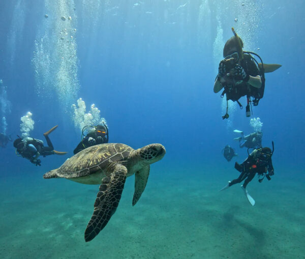 ウミガメと同じ目線で泳ぎ、