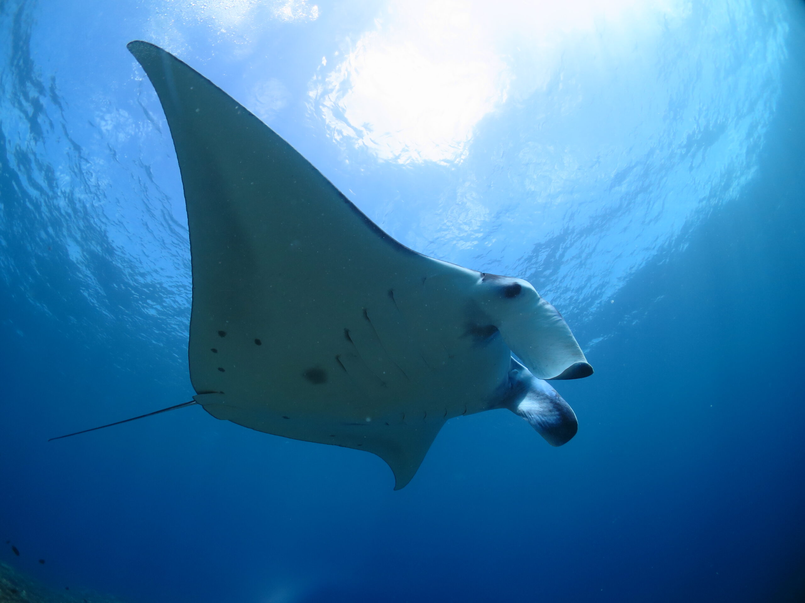 マンタはプランクトンを捕食するので、水中で観察する際は