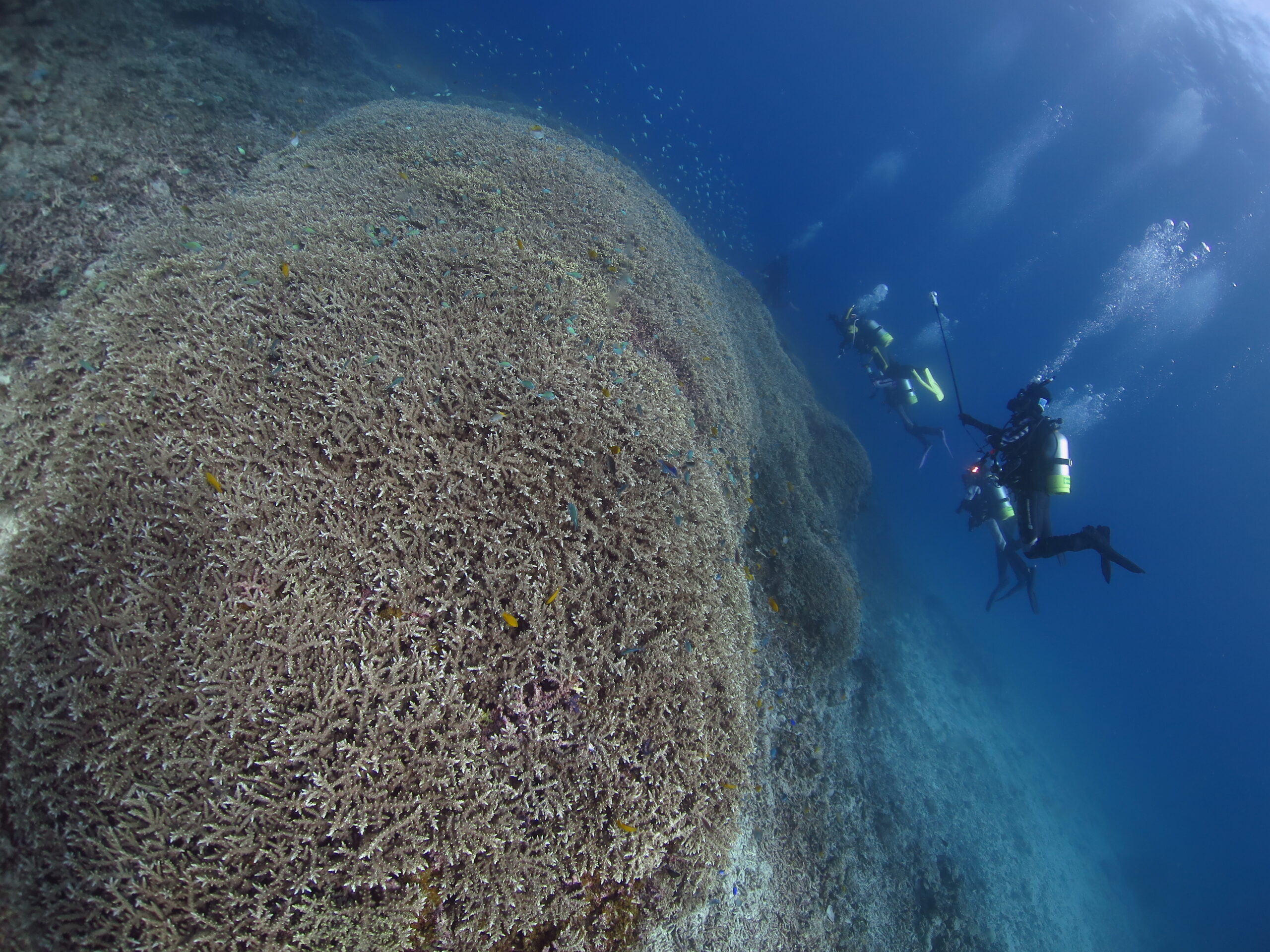 ここは有名なポイントで、見渡す限りのサンゴ礁群が広がってます!
