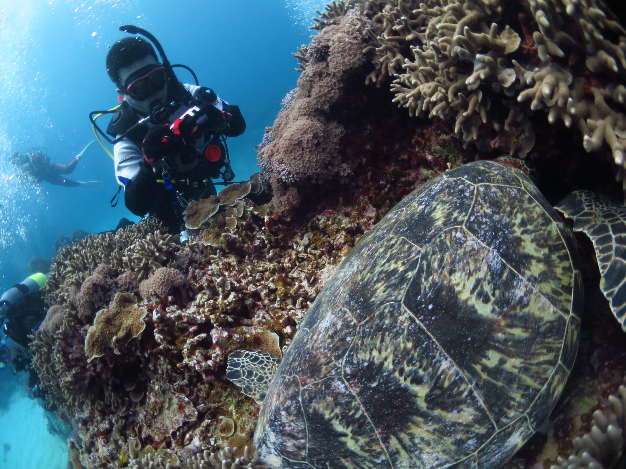 そして、沖縄本島&ケラマ諸島のカメはダイバーに慣れています笑