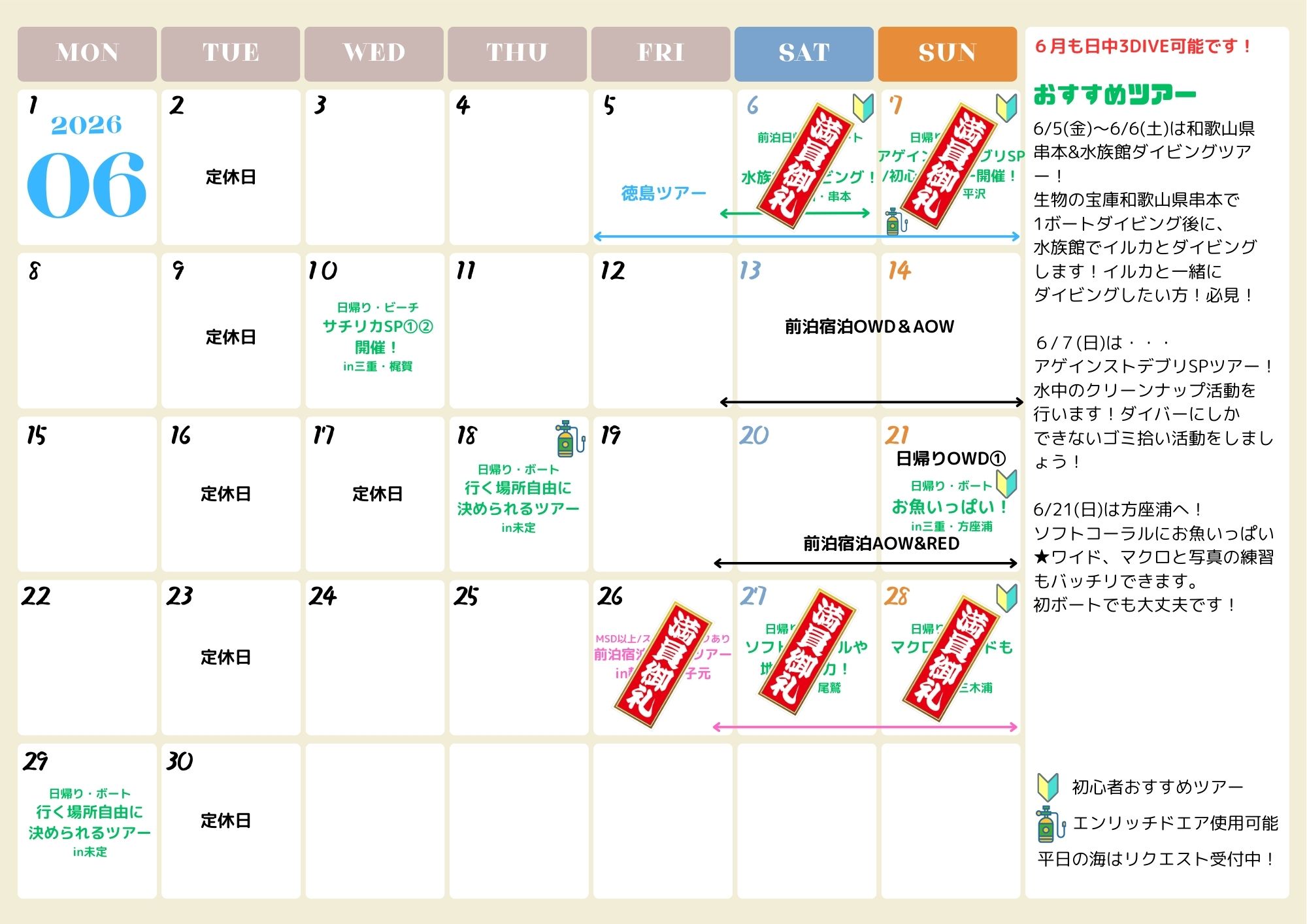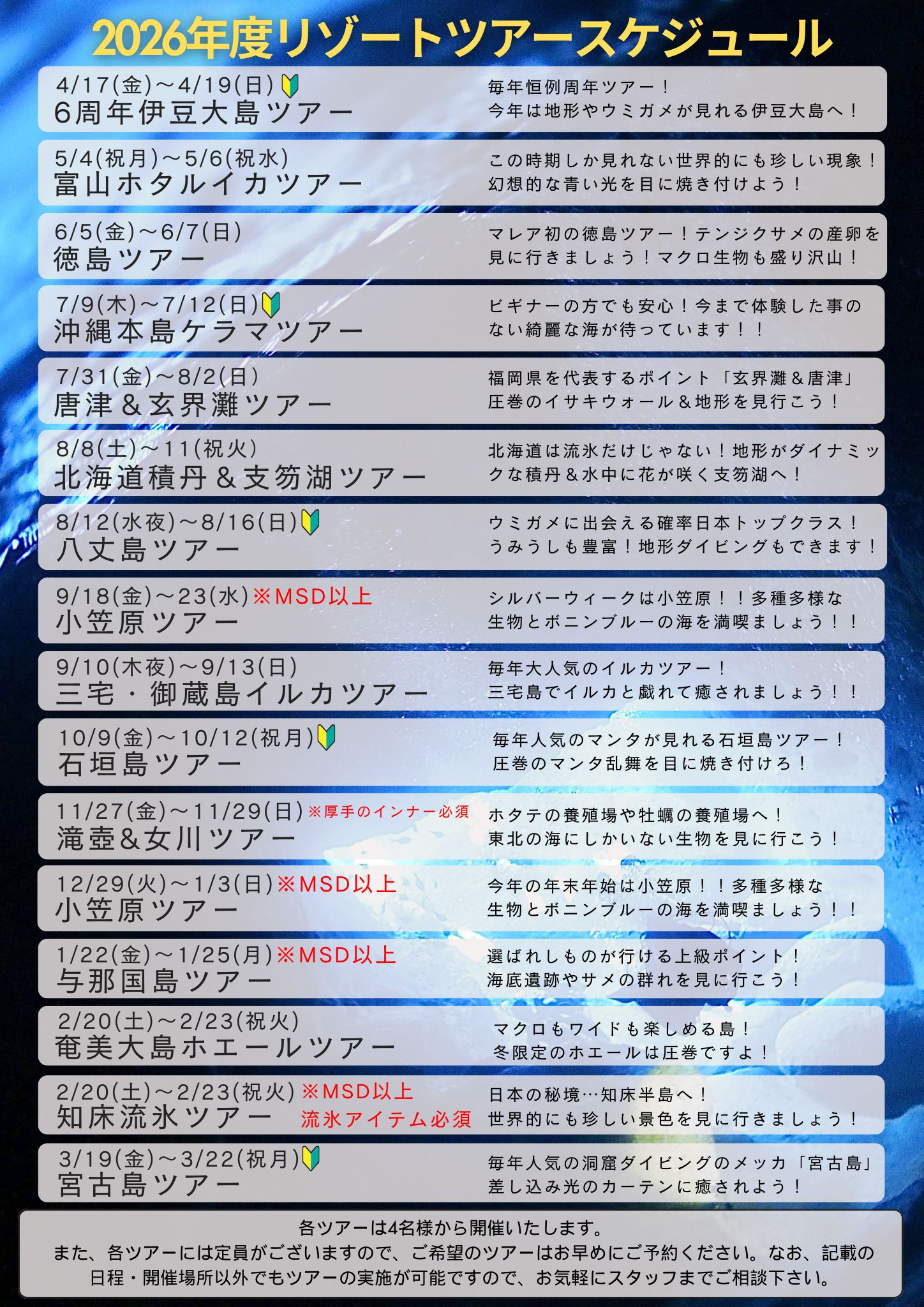 【2026年度リゾートツアースケジュール】