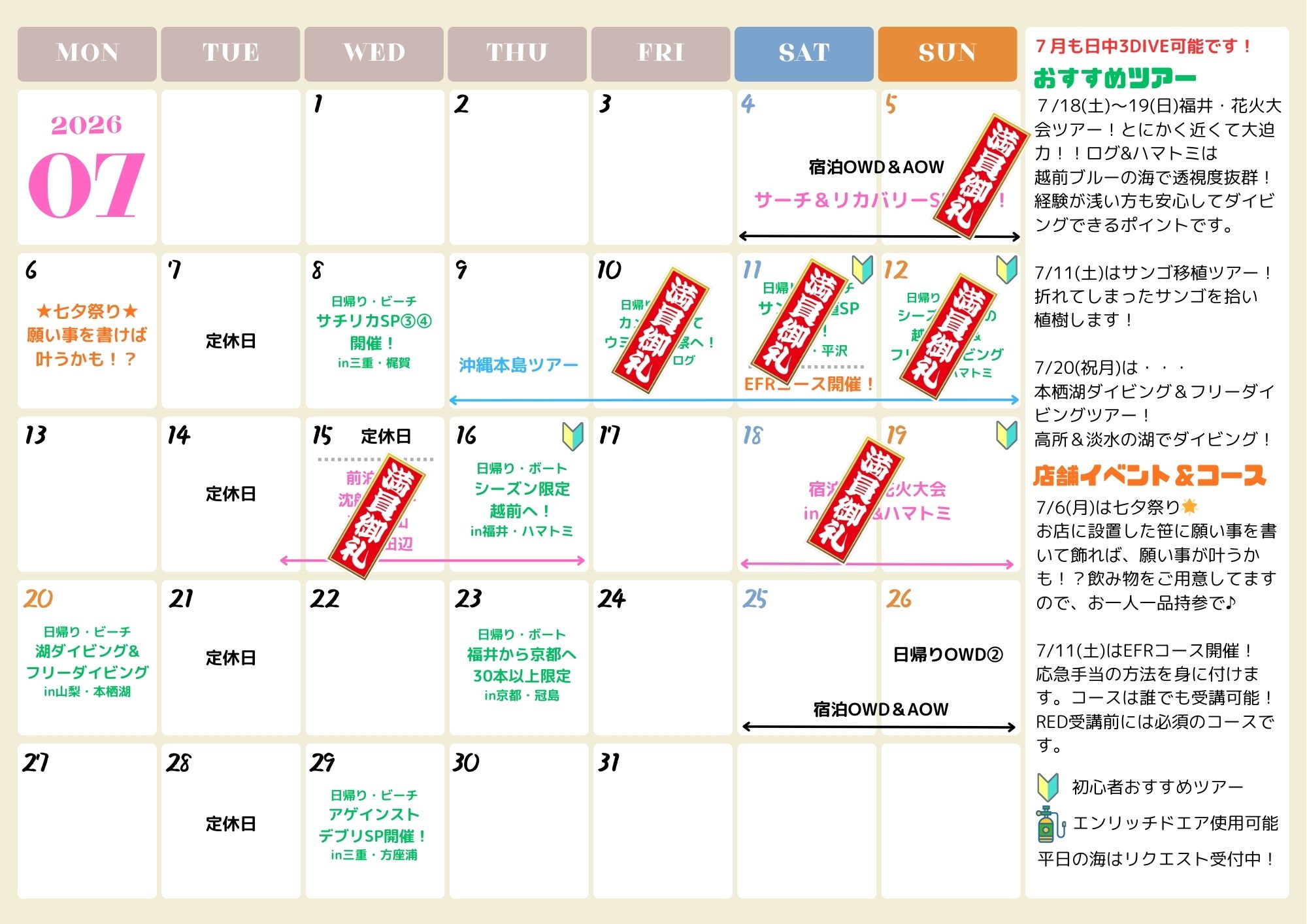 ご予約いただくタイミングによっては埋まっている可能性がございます。