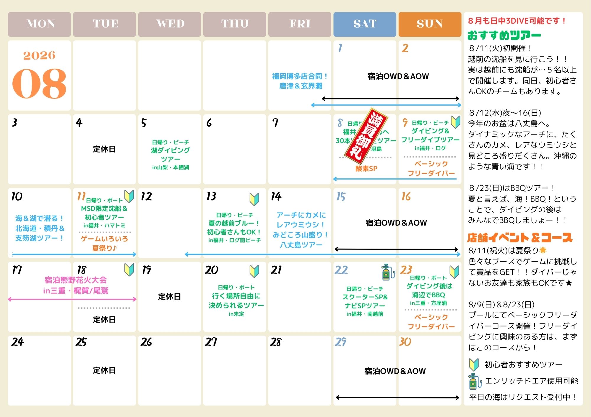 『福井県&和歌山県ダイビングポイント』