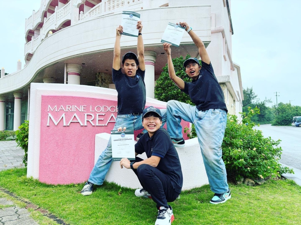 体験ダイビングを行った際に、水中で呼吸できることに感動して、ダイビングのインストラクターになろうと思い、ダイビングの専門学校に入学し、インストラクターになりました!