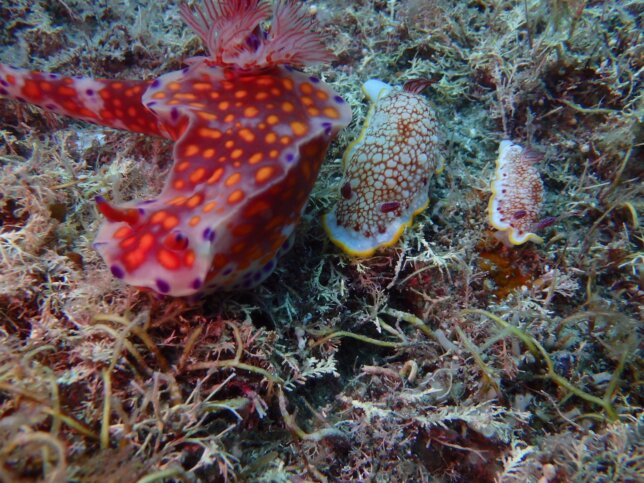 アオウミウシなどのマクロ生物も多く見られます。