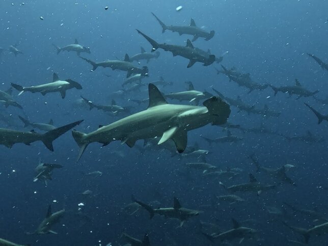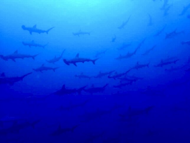 目の前をハンマーヘッドシャークの群れを見た瞬間、水中で叫んじゃうと思います(笑)