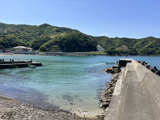 リアス式海岸が特徴の方杭湾内には一文字防波堤や蟻島などが沖合にあり、