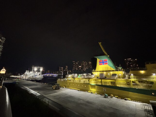 • 竹芝桟橋から大型客船「橘丸」に乗りこみます。