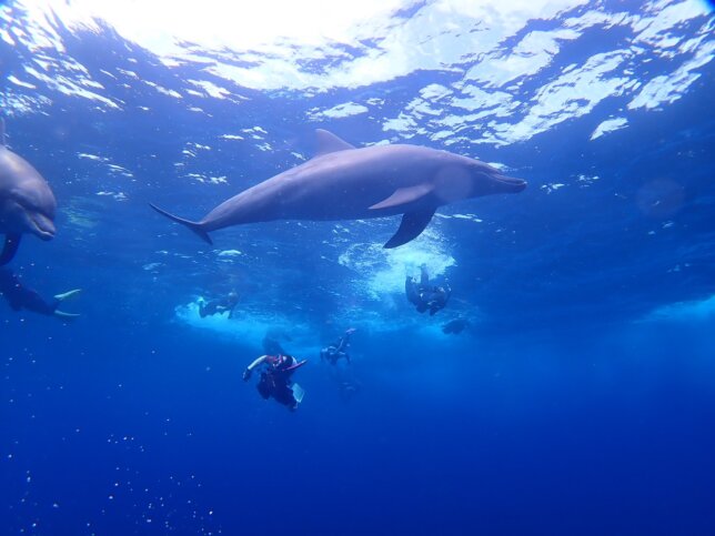 水面でイルカを眺めるのも楽しいですが、やはり水中5mほど潜れるようになれば、イルカと同じ目線で遊びに近づいてくれる可能性がグッと上がります!