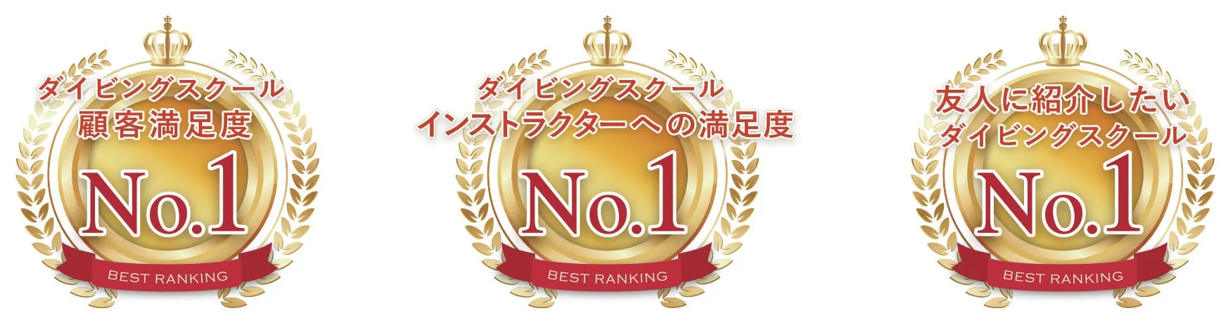 マレアは「安心・安全・快適」をコンセプトにダイビングの魅力を伝えてきました。その結果、多くのお客様からの支持により、全国で「ダイビングスクール顧客満足度第1位」「ダイビングスクールインストラクターへの満足度第1位」「友人に紹介したいダイビングスクール第1位」の3冠を獲得しました。