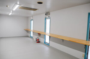 サービス内は清潔で広々とした施設が充実。
